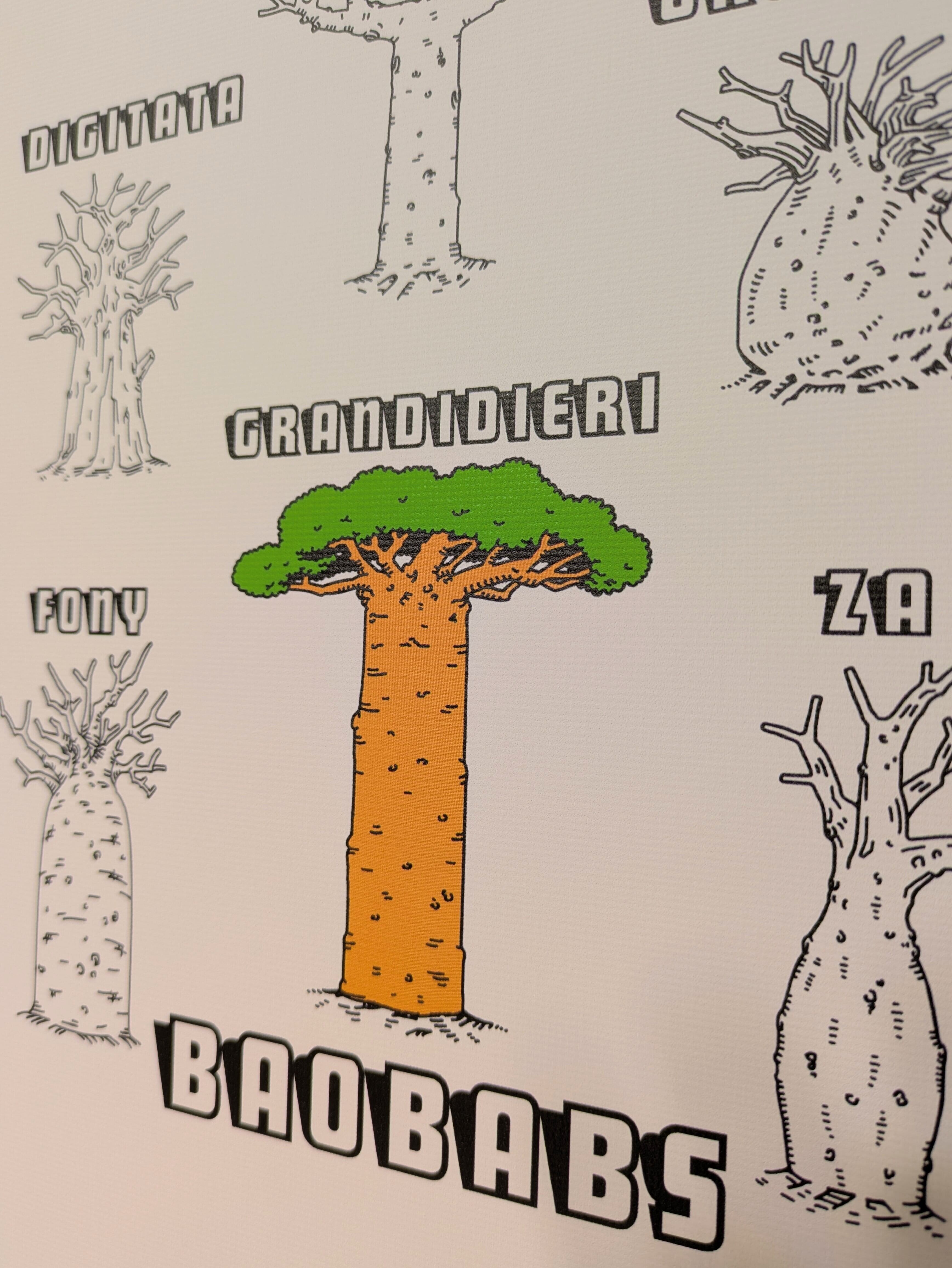 アメリカンポップアート風のポイント着色で、ユニークな各種バオバブの魅力が詰まった素晴らしい出来栄えです。