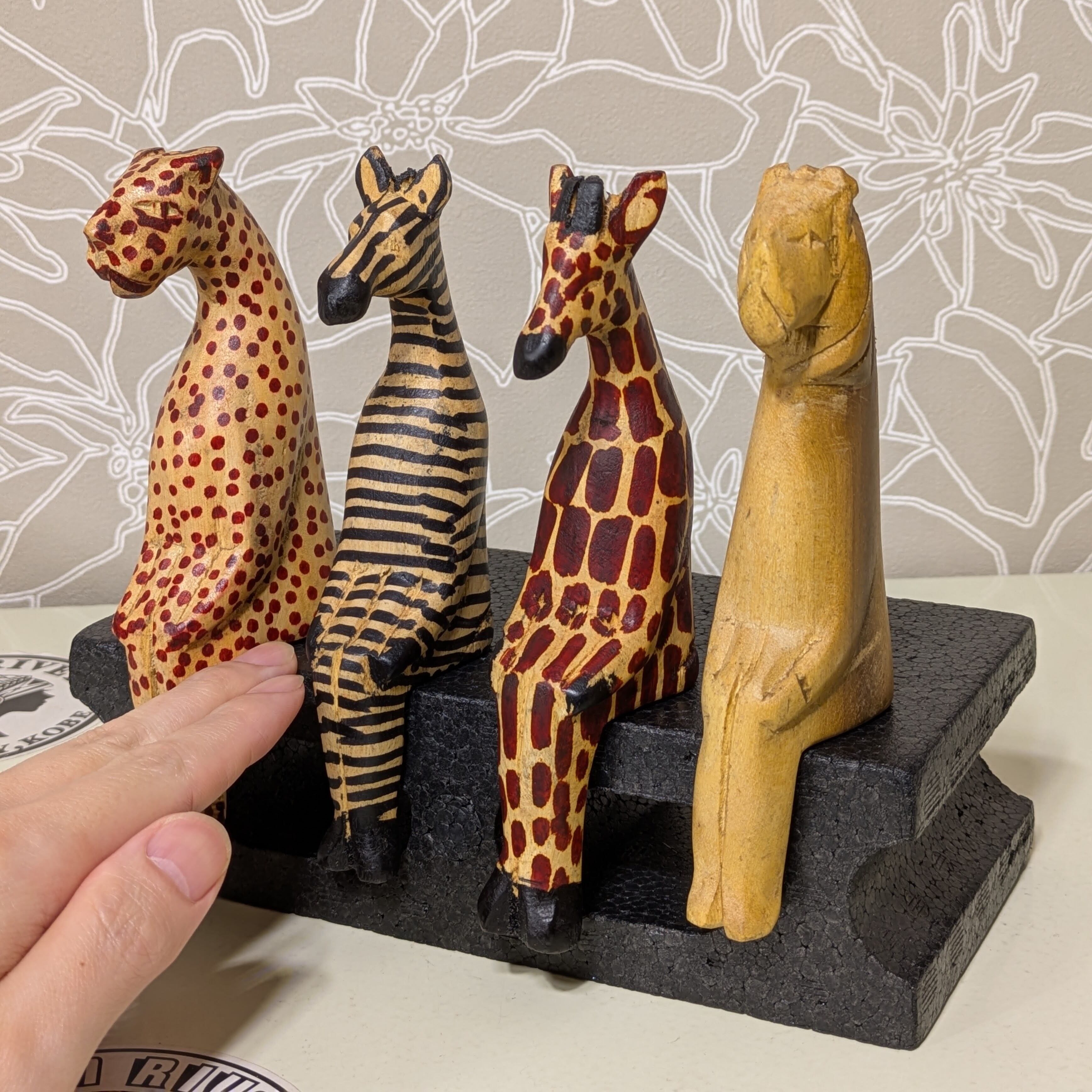 ケニア産 木彫りのおすわりアニマル ミニサイズ4頭セット