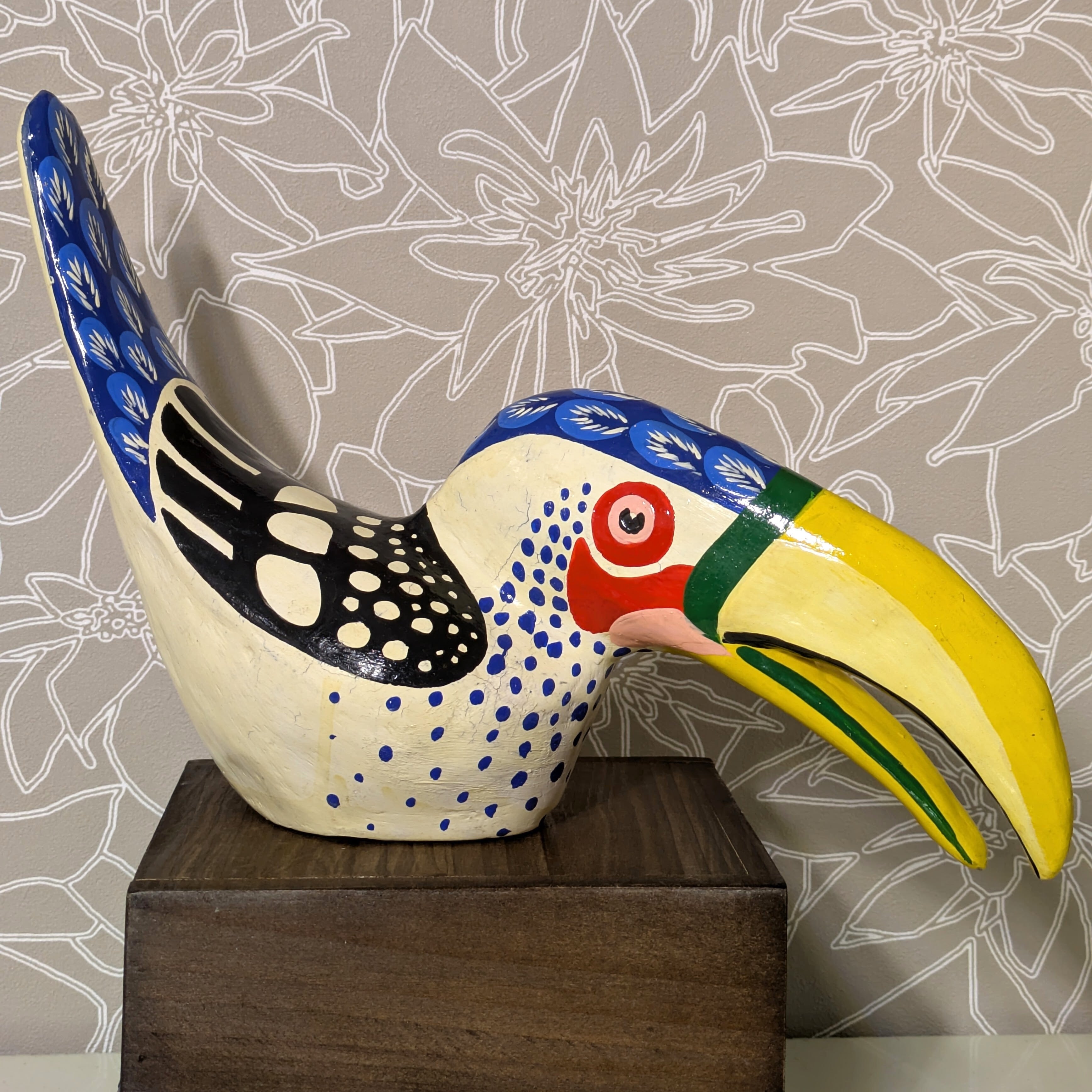 ジンバブエで作られている、アフリカの伝統工芸「ペーパーマッシュ(張り子)」によるサイチョウのオブジェです。