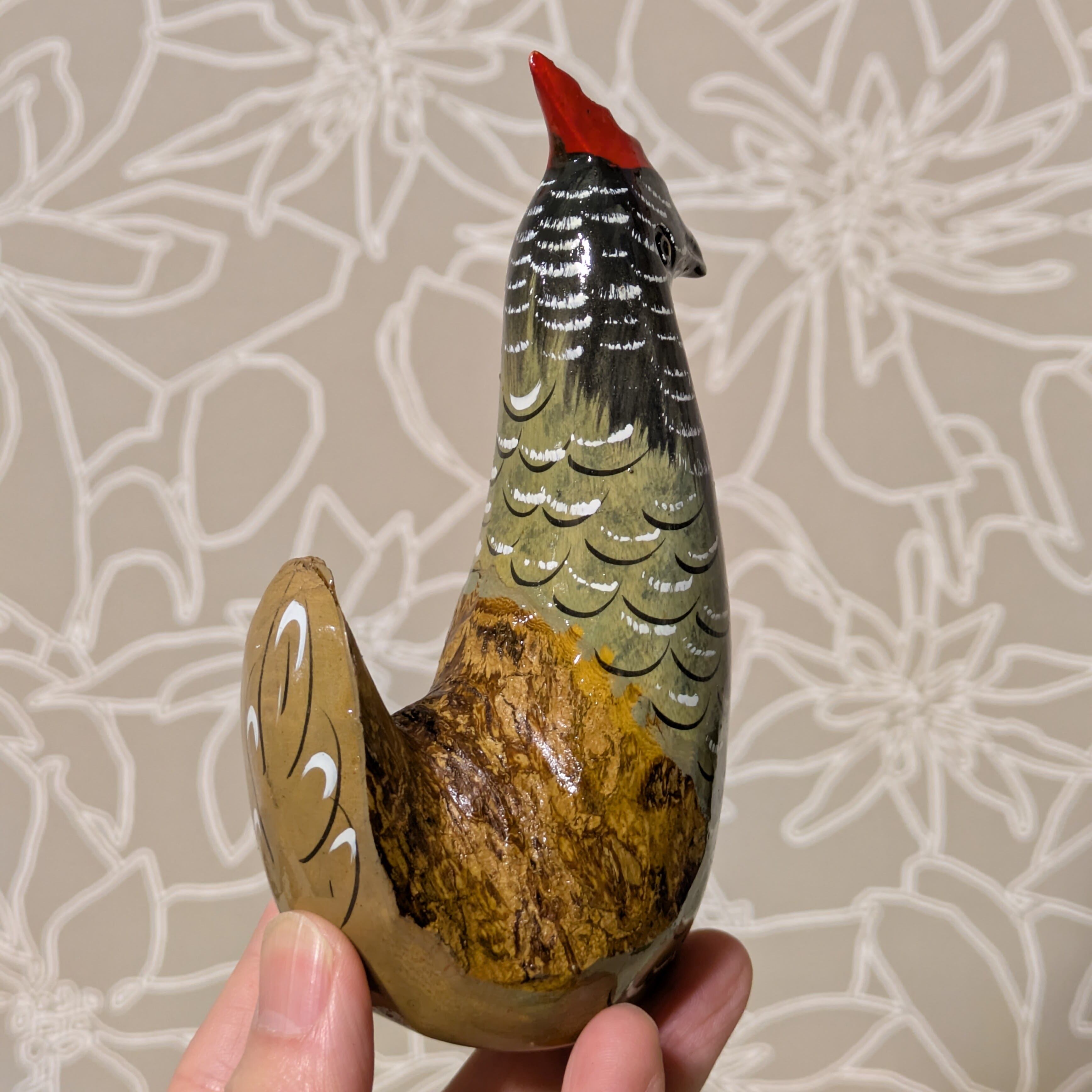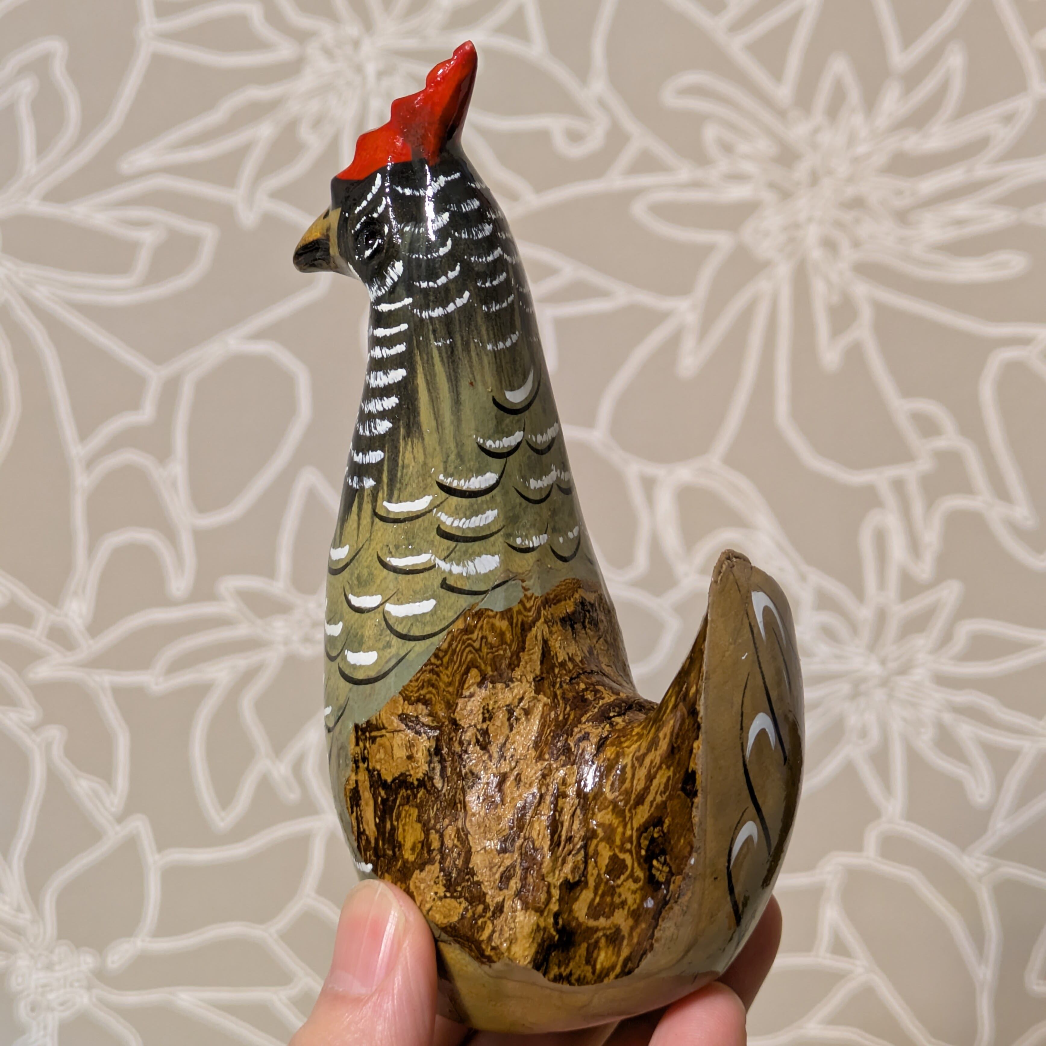 ケニアで一つひとつ丁寧に手彫りされ、美しくペイントされた非常に完成度の高い木彫りのニワトリです。