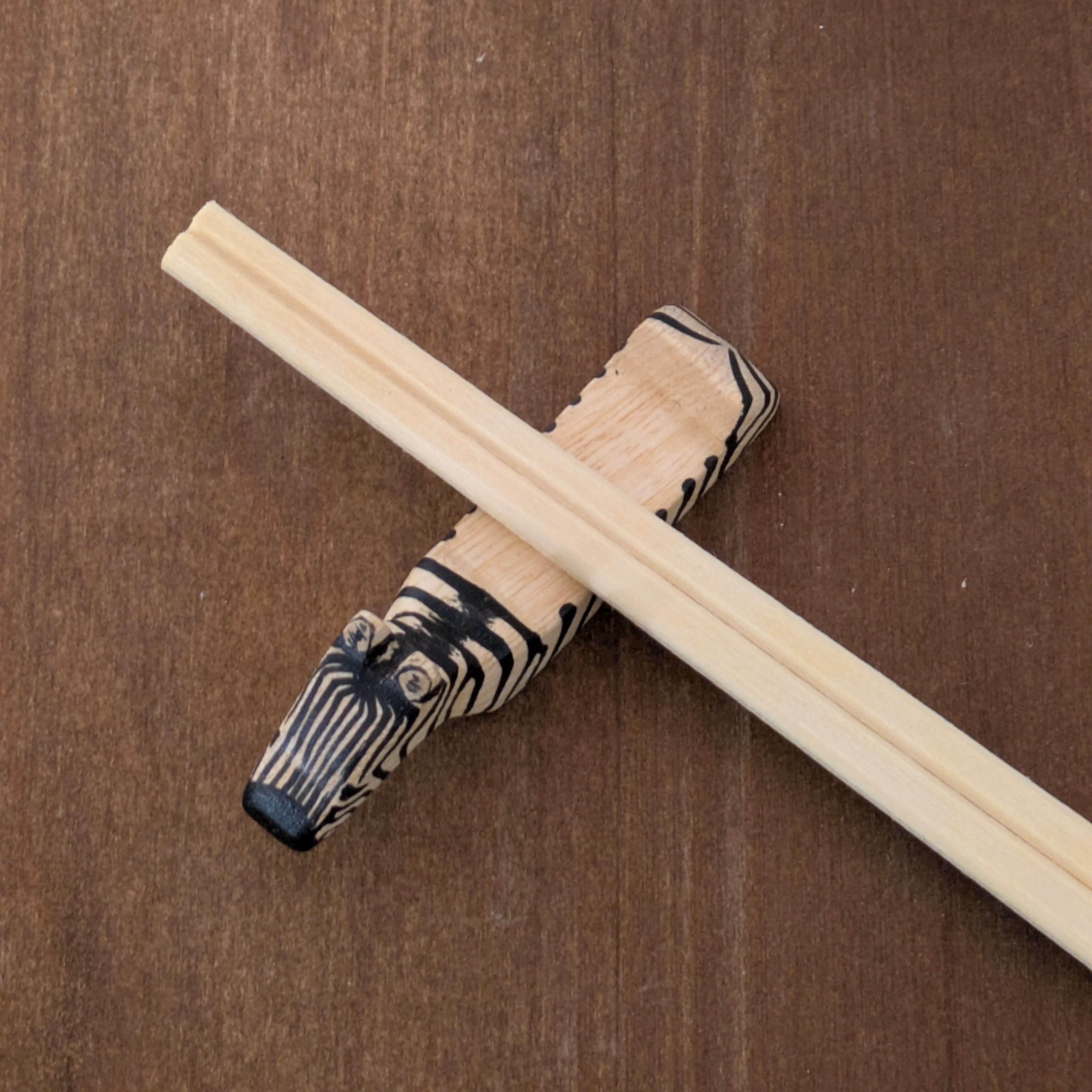シマウマやキリンなどの動物を、箸を安定して置けるよう立体的にデザインしており、