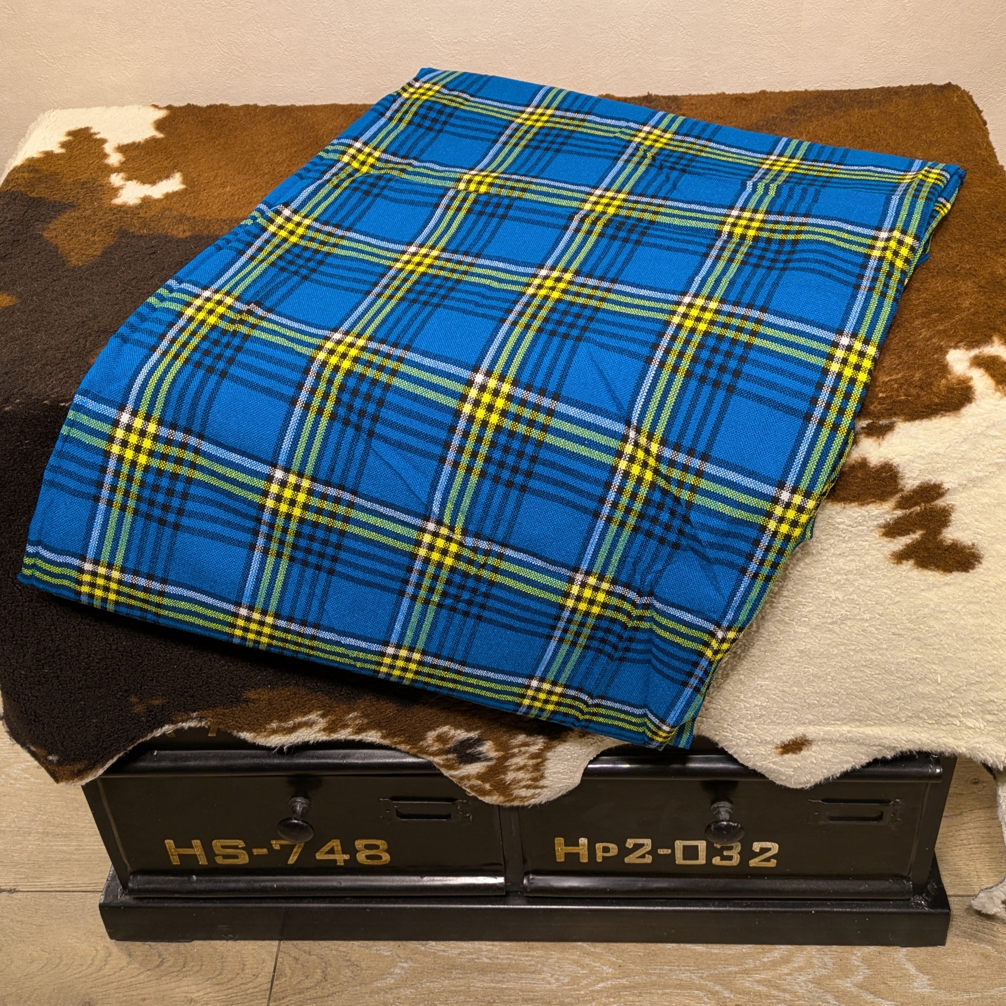 深みのあるブルーを基調に、イエローのラインがリズムよく走るチェック柄。