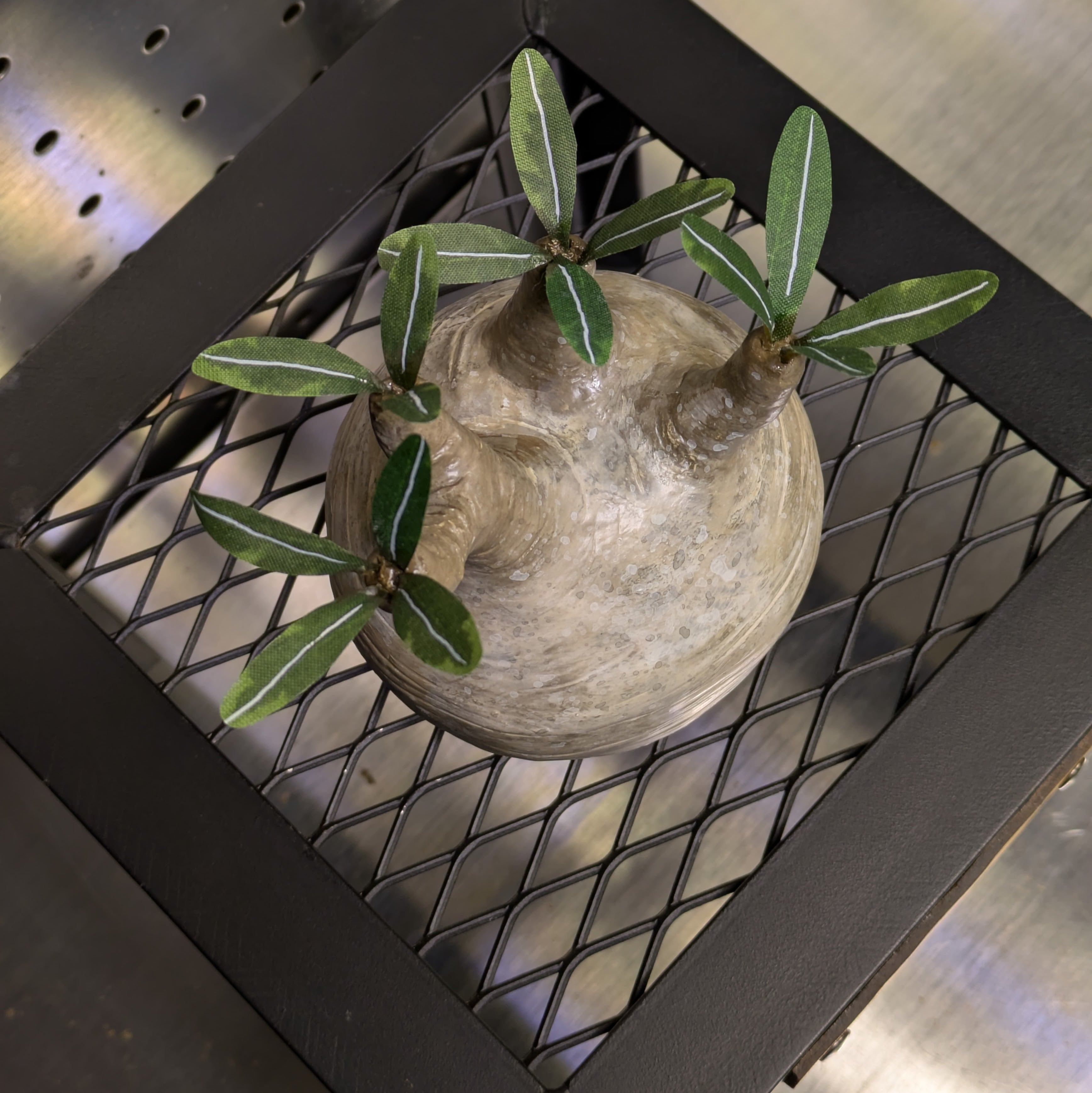 塊根植物の王道とも言えるパキポディウム・グラキリスをモチーフに、一点ずつ丁寧に造形されたクラフトクレイ製フィギュア。