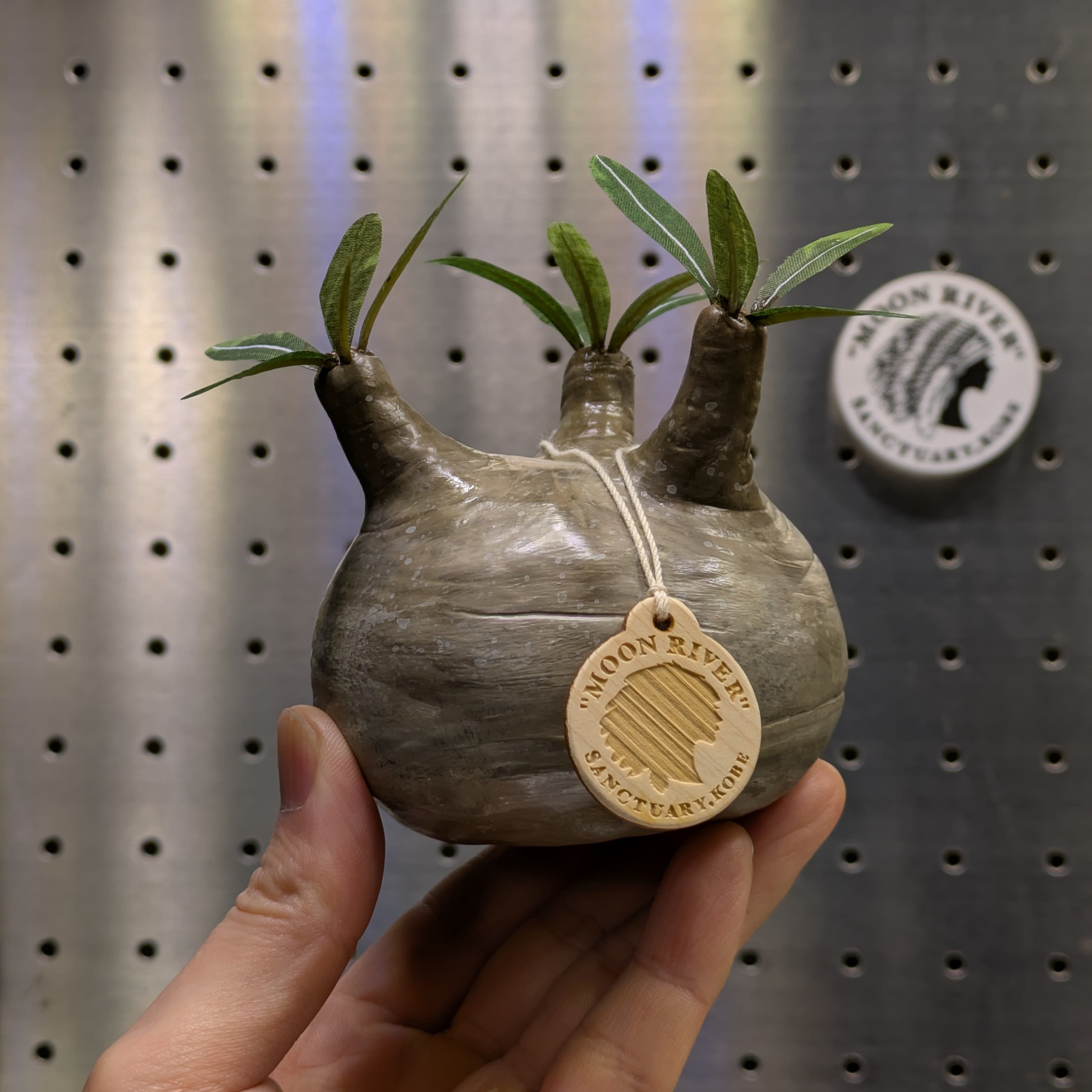 塊根植物の王道とも言えるパキポディウム・グラキリスをモチーフに、一点ずつ丁寧に造形されたクラフトクレイ製フィギュア。